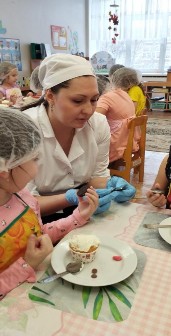 Мама Стеши Бакалиной - Ольга Николаевна по профессии кондитер. Она с удовольствием провела для детей мастер-класс по украшению капкейков "Пингвинчики". Ребята намазывали вкуснейший белковый крем, а потом с помощью шоколадного печенья и сладкого суфле коснтруировали пингвинят, ну и конечно потом лакомились своим произведением. Все были в восторге! Благодарим Ольгу Николаевну за интересное познавательное занятие для ребят!