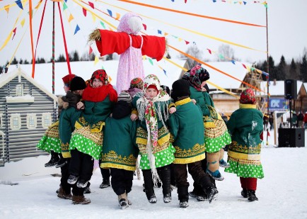В этот день встречают Масленицу, наряжают куклу-чучело, строят снежные горы.