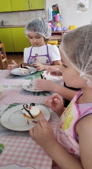 Мама Стеши Бакалиной - Ольга Николаевна по профессии кондитер. Она с удовольствием провела для детей мастер-класс по украшению капкейков "Пингвинчики". Ребята намазывали вкуснейший белковый крем, а потом с помощью шоколадного печенья и сладкого суфле коснтруировали пингвинят, ну и конечно потом лакомились своим произведением. Все были в восторге! Благодарим Ольгу Николаевну за интересное познавательное занятие для ребят!