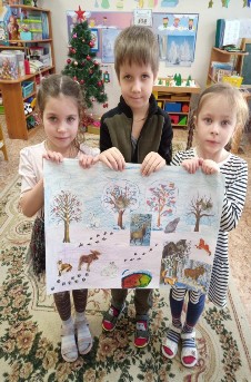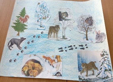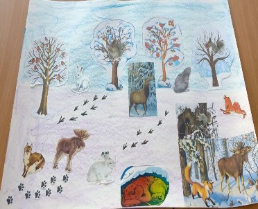 Одним из видов нетрадиционных способов изображения, который можно использовать в работе с детьми, является коллаж. Использование этой техники позволяет знакомить детей с основами композиционного построения изображения, поддерживает интерес к разным темам. Работа над коллективным коллажем развивает также коммуникативные качества. Изучая животный мир родного края, мы создали коллажи "Зимний лес". Дети увлеченно работали в двух подгруппах, а затем поиграли в игры "Кто где?", "Чьи следы?", "Угадай по описанию".