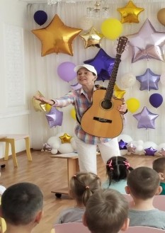 В гостях у ребят побывала музыкант Татьяна Орлова со своей авторской музыкально-развлекательной программой «Сказка в песенке живет». В репертуаре музыканта детские песенки на стихи челябинских поэтов. Ребятам представилась возможность узнать что-то новое, непосредственно включиться в действие попробовать свои силы в качестве музыканта. Общение, благодаря профессионализму и искренности музыканта, получилось легким и радостным.